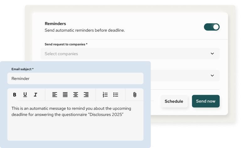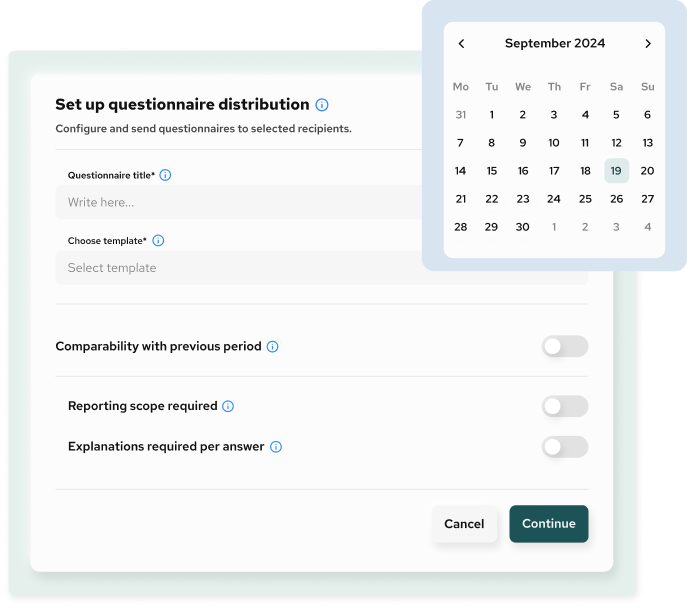 Automate questionnaires, track responses across teams and entities, and reduce manual follow-up throughout the reporting cycle.